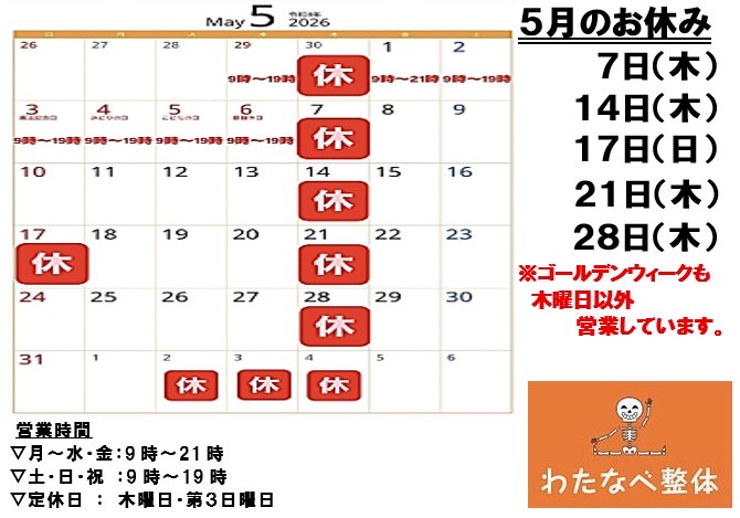 5/7(木)定休日