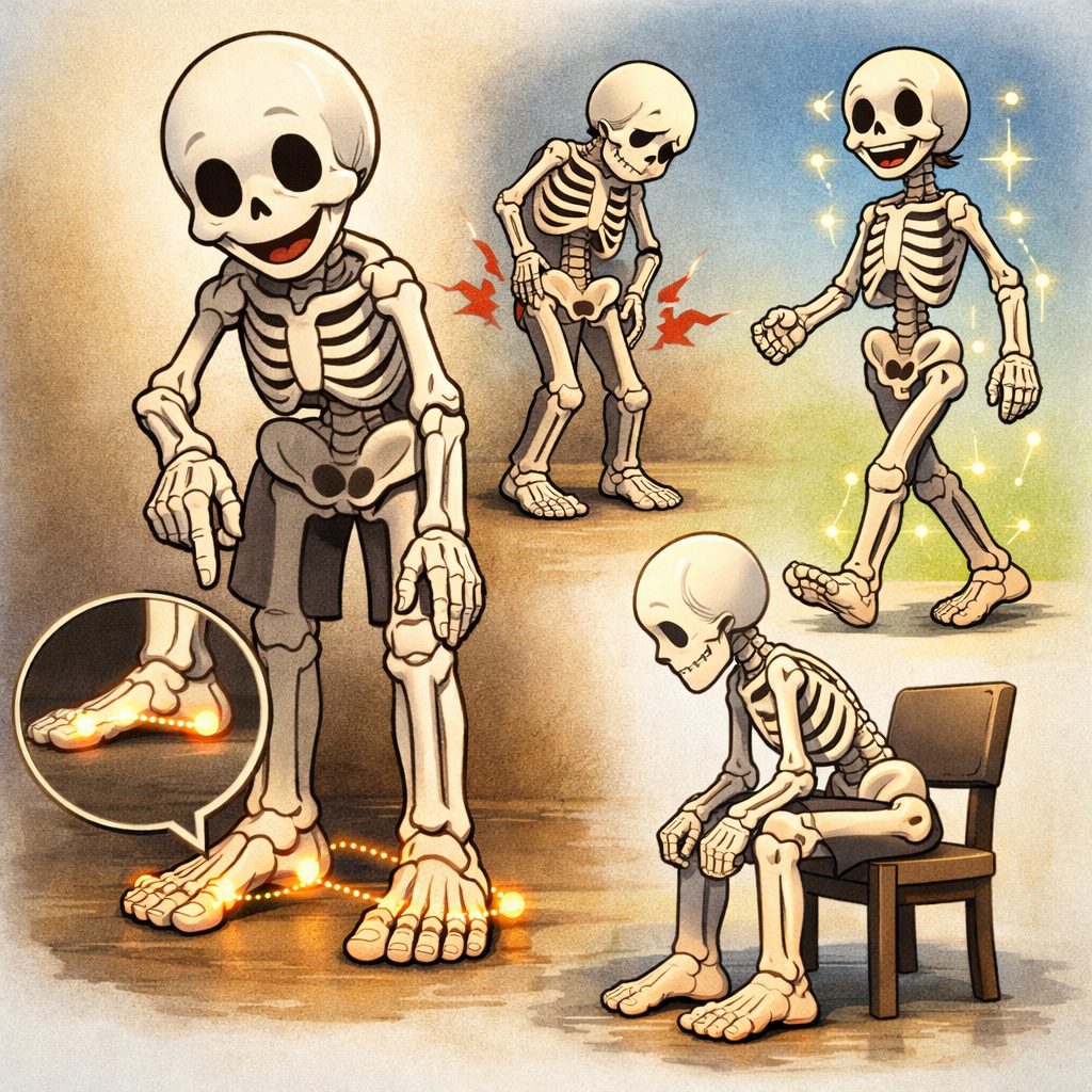 この構造が正しく機能していると、歩行や立位の際に衝撃を分散し、上半身への負担を和らげてくれます。