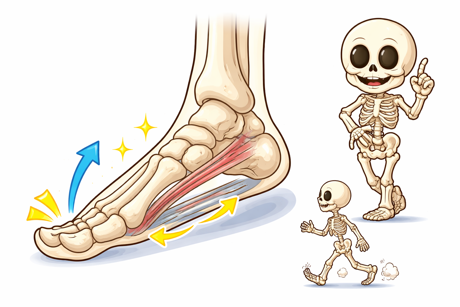 親指が反ることで、かかとから指の付け根までつながっている足裏の組織(足底腱膜)にピンと張力が生まれます。